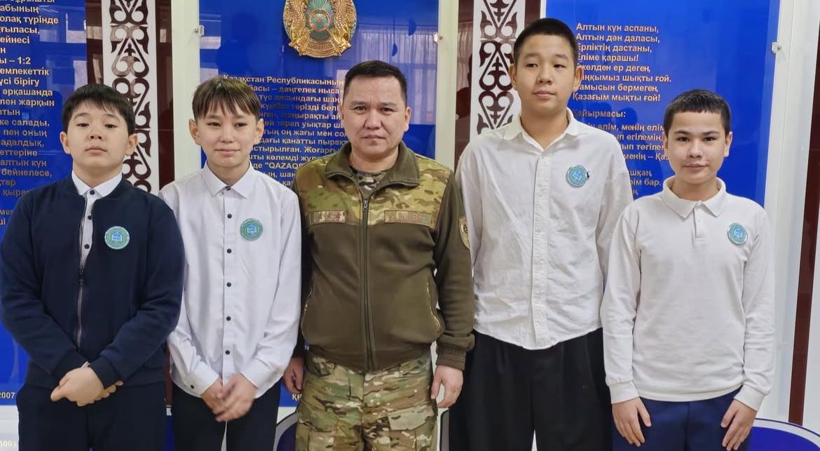 14.01.2026 с учениками 6 «В» класса в рамках программы «Адал Азамат» по воспитательной работе на январь (направление «Закон и порядок») состоялась встрече с полковником, начальником отдела по чрезвычайным ситуациям Жетысуйской области — Дарманкуловым Нурдаулетом Келисовичем.
