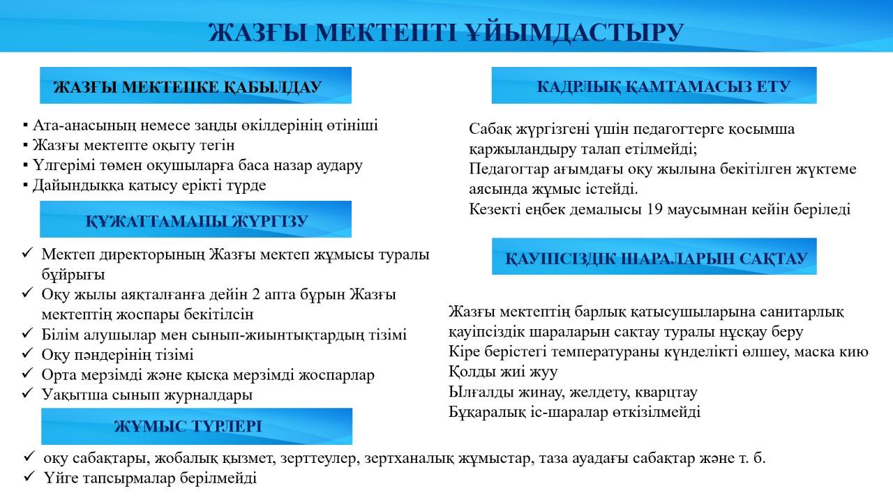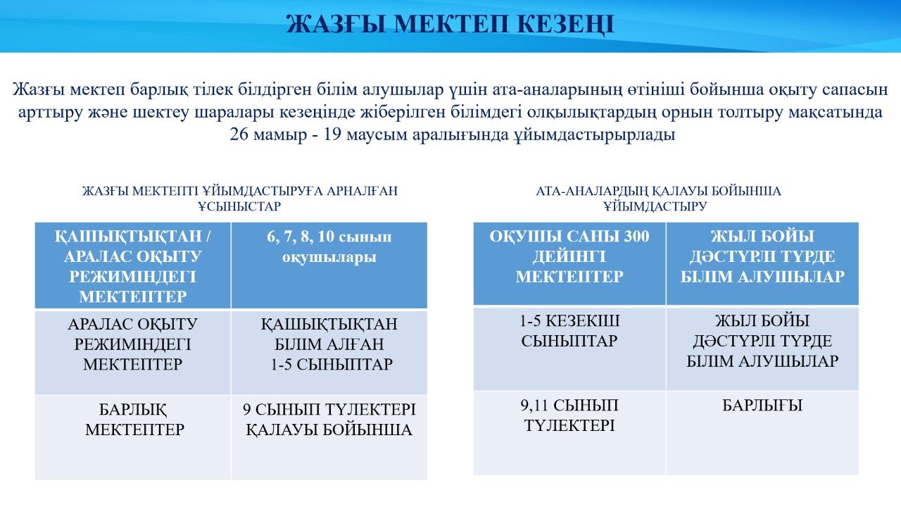 2020 -2021 оқу жылында жазғы мектепті ұйымдастыру туралы