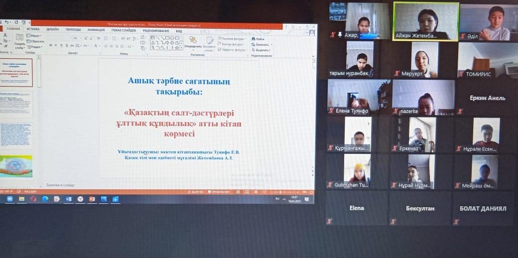 Ашық тәрбие сағатының тақырыбы: «Қазақтың салт-дәстүрлері ұлттық құндылық» атты кітап көрмесі.