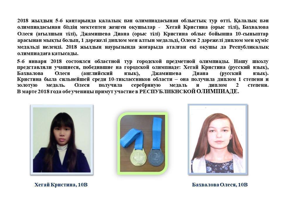 Результаты олимпиады » "№12 орта мектеп-гимназиясы" Талдықорған қаласы