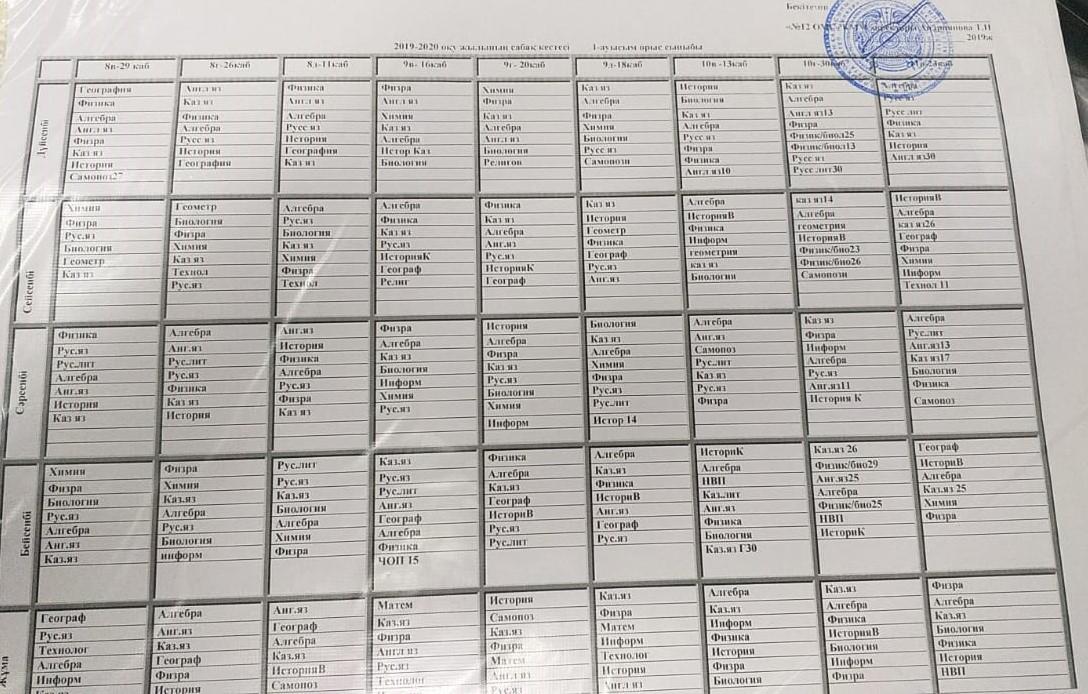 Расписание уроков 1 смены » "№12 орта мектеп-гимназиясы" Талдықорған қаласы