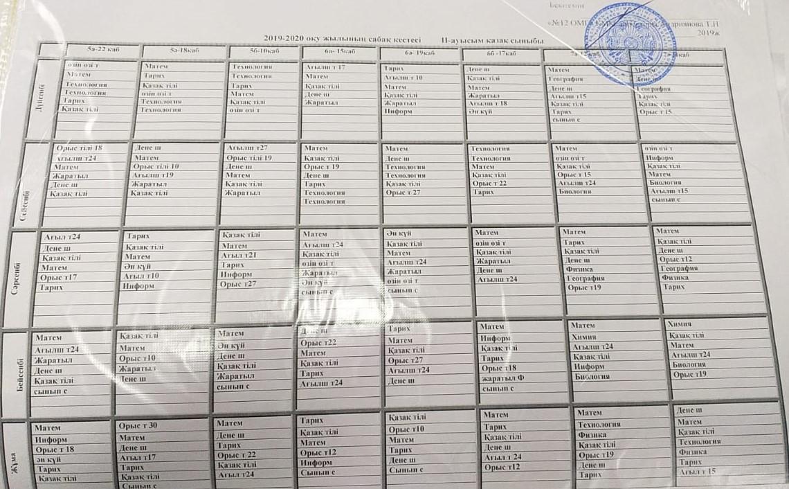 Сабақ кестесі » "№12 орта мектеп-гимназиясы" Талдықорған қаласы