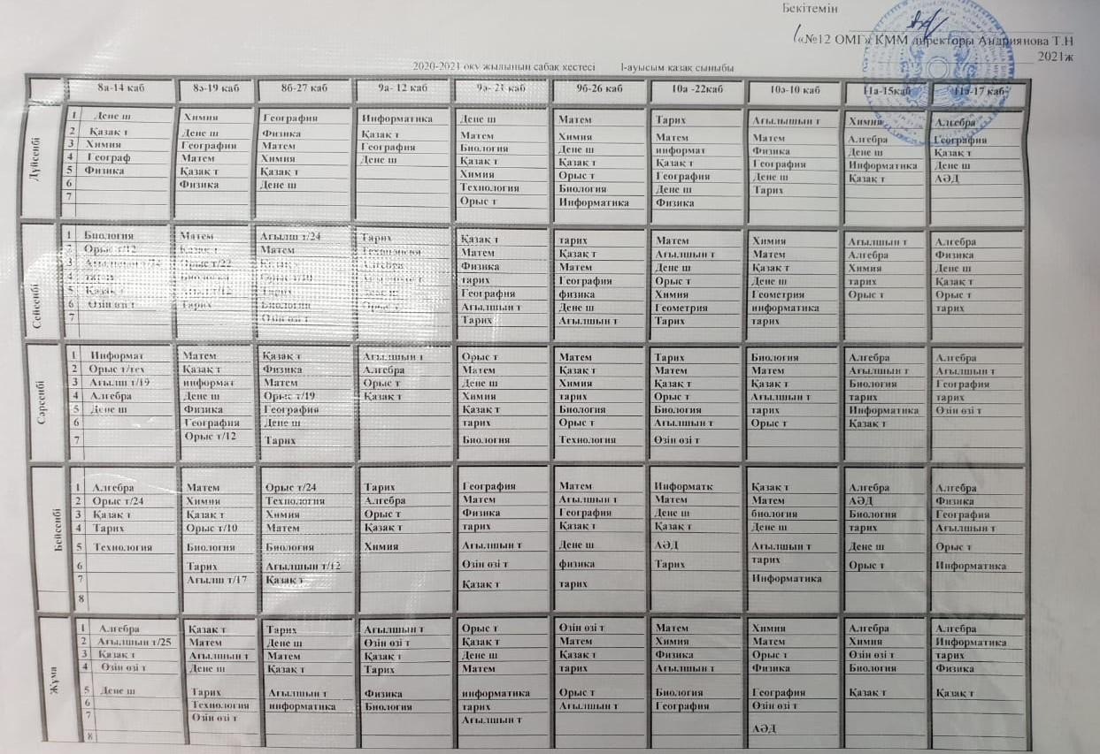 САБАҚ КЕСТЕСІ 2021-2022 ОҚУ ЖЫЛЫ » "№12 орта мектеп-гимназиясы" Талдықорған қаласы