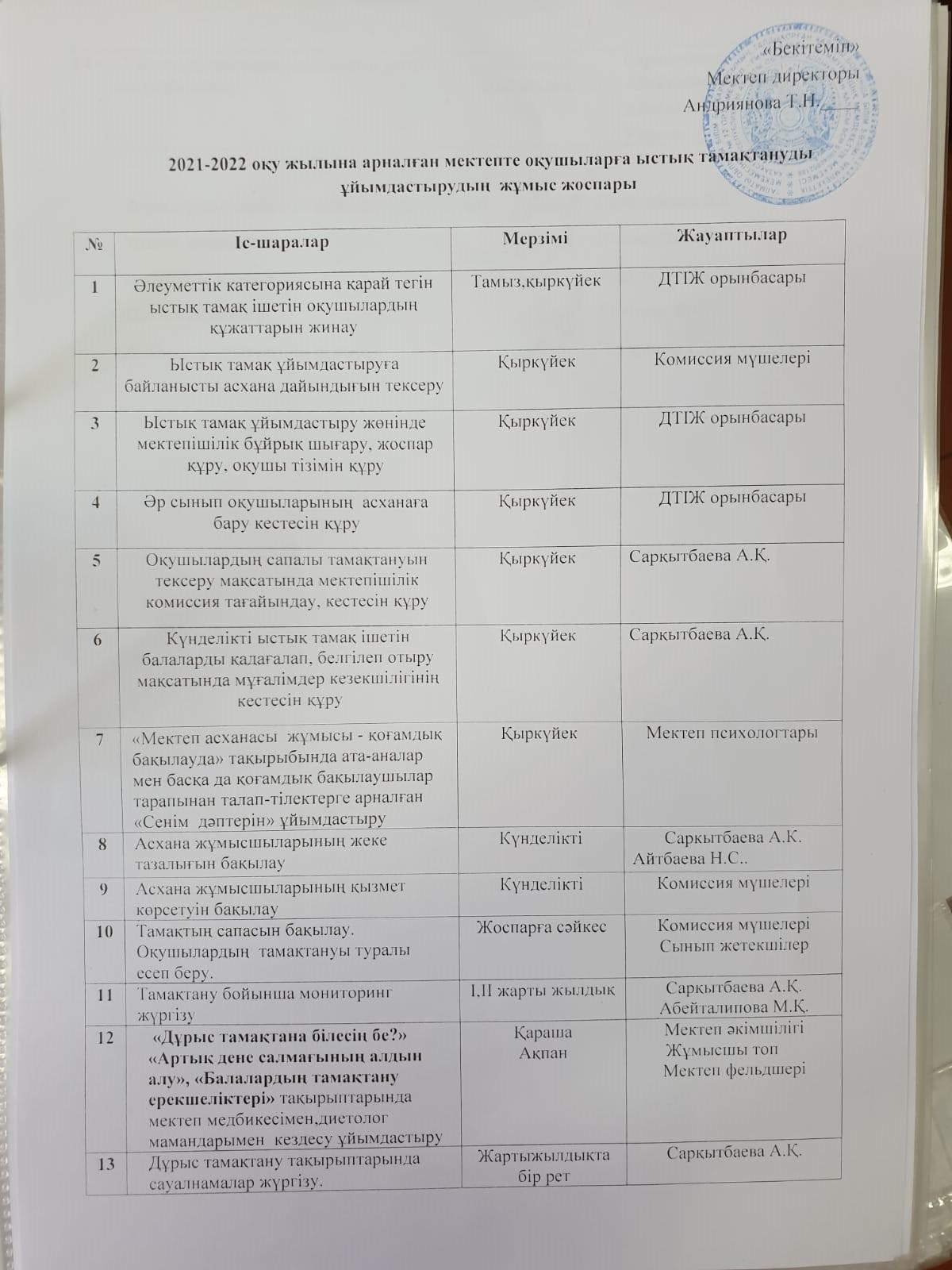 » » Тамақтануды ұйымдастырудың жұмыс жоспары